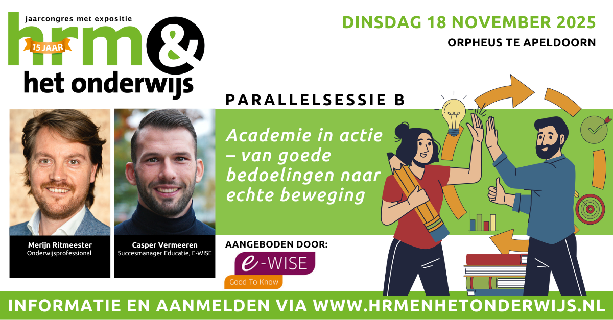 In een tijd waarin scholen continu in beweging zijn, is (blijvende) ontwikkeling van medewerkers geen luxe, maar noodzaak. Hoe zorg je ervoor dat leren en ontwikkelen van je medewerkers echt onderdeel wordt van de organisatie en organisatiecultuur? In deze sessie nemen wij je mee in onze reis: de totstandkoming van een (online) academie binnen het onderwijs. We delen eerlijke inzichten over wat werkt en vooral wat niet werkt. Over hoe je draagvlak creëert, welke valkuilen je liever vermijdt, en waarom een stevig framework voor leren en ontwikkelen niet alleen belangrijk is, maar simpelweg onmisbaar.