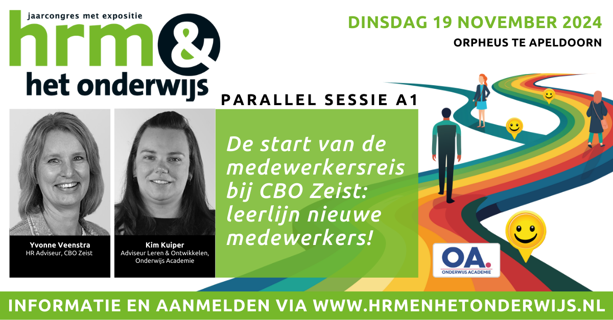 Tijdens deze workshop geven Yvonne Veenstra, HR Adviseur bij CBO Zeist en Kim Kuiper, Adviseur Leren & Ontwikkelen bij Onderwijs Academie een inkijk in hoe CBO Zeist haar onboarding in haar digitale academie heeft vormgegeven. De ‘leerlijn nieuwe medewerkers’ is een leerlijn die is opgesteld voor iedere nieuwe medewerker binnen CBO Zeist. Het doel is om nieuwe medewerkers hiermee te ondersteunen bij een soepele en succesvolle start en snel en effectief kennis te laten maken met CBO Zeist, onze cultuur, werkwijzen en andere ‘nieuwe’ collega’s. Daarbij is het aanbrengen van verbinding met zowel de schoollocatie als met het schoolbestuur versterkend voor de binding met de organisatie. Yvonne en Kim lichten toe hoe vorm én inhoud is gegeven aan deze leerlijn en hoe onboarding vloeiend overgaat in nascholing. Ze laten zien hoe de leerlijn heel praktisch is vertaald en dicht bij de medewerker is gebracht én hoe medewerkers zelf invulling kunnen geven aan de leerlijn.